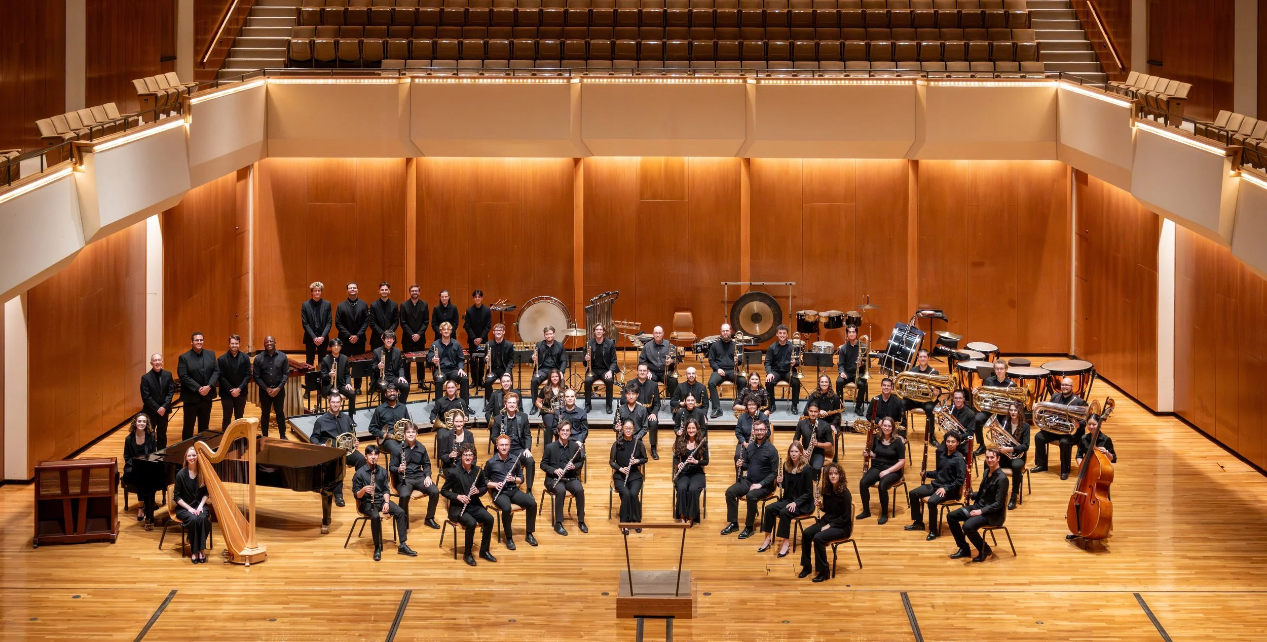 The Wind Symphony performs a minimum of three concerts per semester, with programs featuring traditional wind band literature, one-per-part chamber works and premiere performances of new compositions in the ever-expanding wind band genre. The ensemble functions as a flexible pool of musicians, with each work in the curriculum utilizing the instrumentation envisioned by the composer.